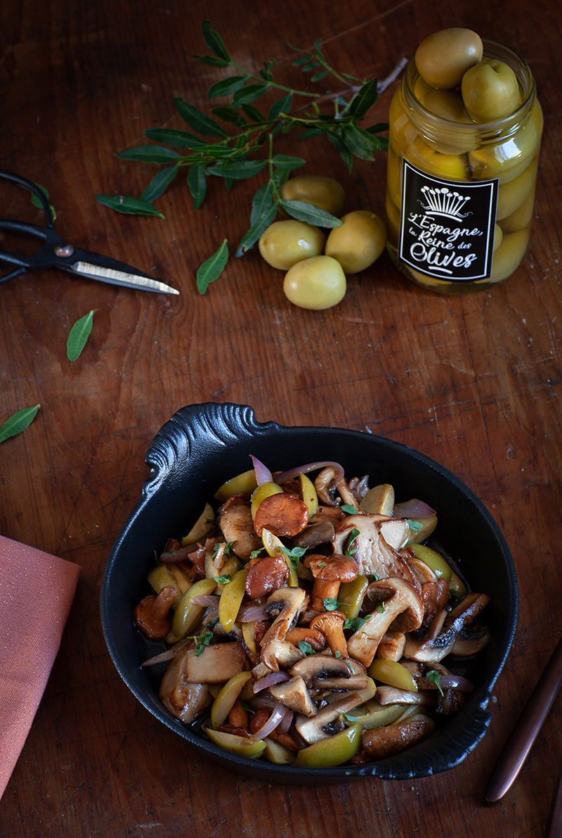 Poêlée de champignons aux olives Manzanilla d’Espagne