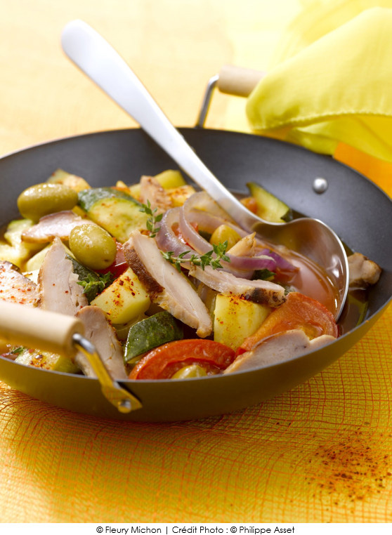 4• Laisser cuire à couvert pendant 20 min environ. Ôter le couvercle puis verser les émincés de poulet grillé Fleury Michon. Laisser mijoter encore quelques minutes.