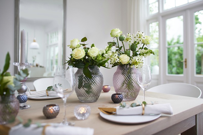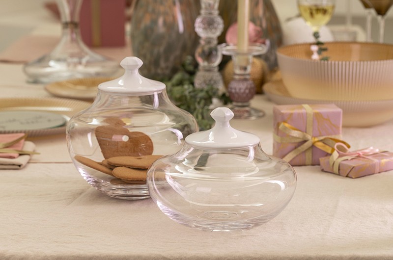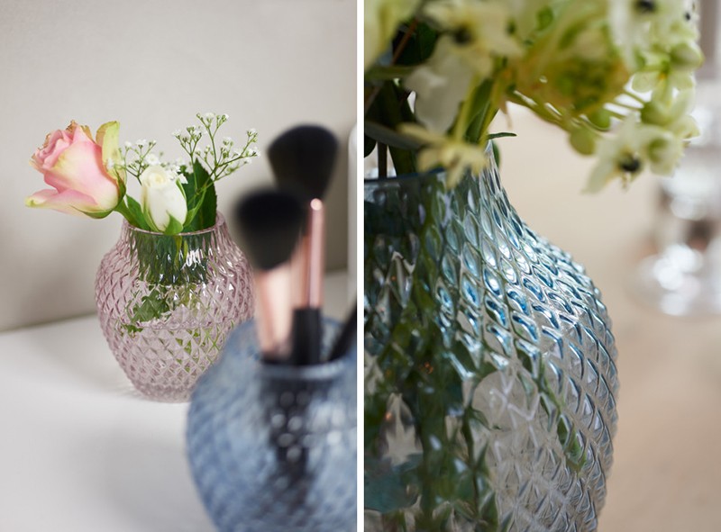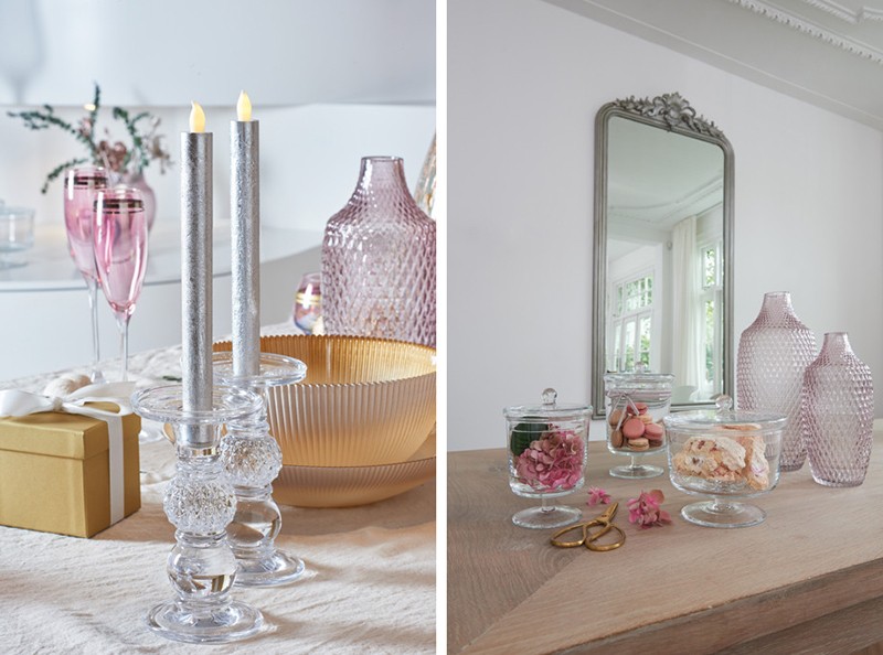 Les vases, bougeoirs, photophores, coupes sur pied et boîtes en verre plissé ou facetté de POESIA distillent une touche de romantisme et une élégance vintage pleine de charme dans la maison.