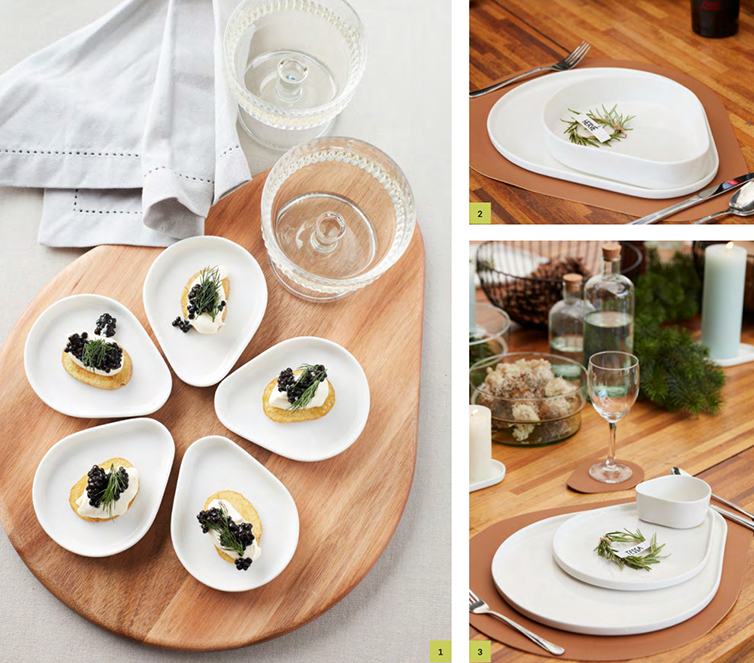 MOMENTS laisse place à la créativité de ses utilisateurs qui superposent les éléments pour dresser une table moderne et délicate. Point-Virgule imagine un décor où la vaisselle en porcelaine s’accorde avec le bois de la table sublimé par quelques branches de sapin. De l’apéritif au dessert, la vaisselle MOMENTS est le fil rouge d’un repas de chef.