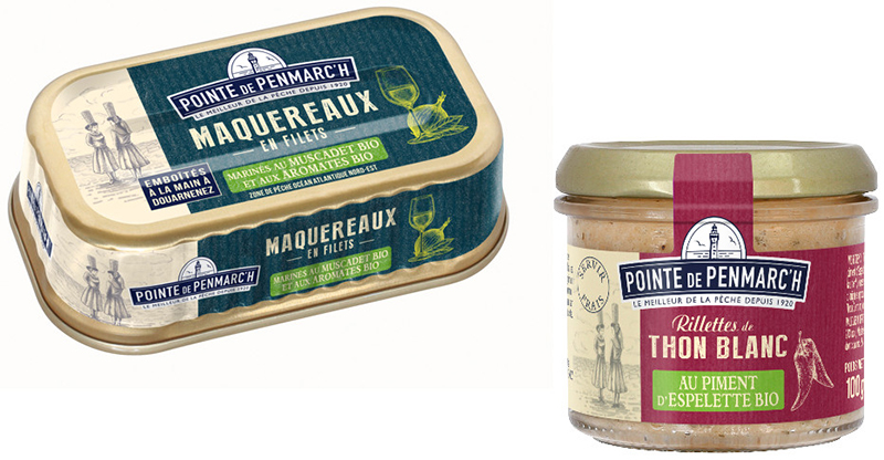 Pour aller encore plus loin dans le plaisir du goût, la marque lance une gamme de 4 recettes imaginées par le chef cuisinier de Pointe de Penmarc’h, préparées avec des ingrédients bio et mises en boîte à Douarnenez. Les maquereaux, sardines et thons blancs germons, tous issus de la pêche responsable, ont rendez-vous avec le Muscadet bio, l’huile d’Olive bio, le piment d’Espelette et les aromates bio pour faire « swinguer » les papilles !
