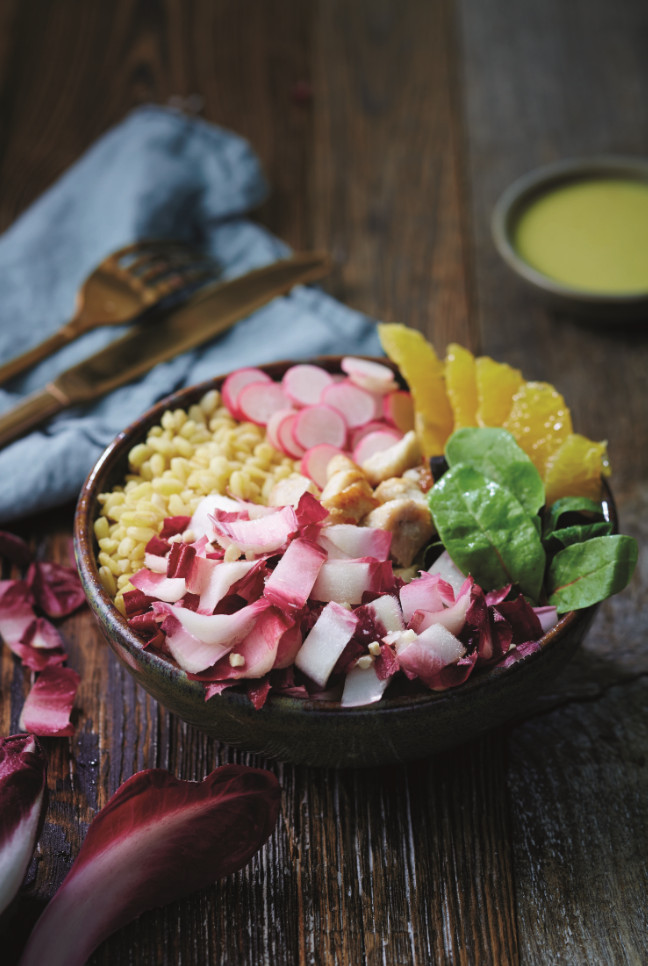 Poke bowl d’endives rouges et vinaigrette à l’orange