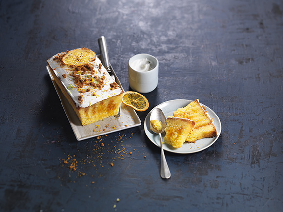Poke cake au St Môret® réduit en sel, à l’orange amère, spéculoos et fleur d’oranger