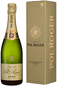 Exclusivement issu de chardonnays des grands crus de la Côte des blancs (Avize, Chouilly, Cramant, Oger, Oiry), le Blanc de Blancs Vintage 2008 a vieilli sept ans dans les caves de Pol Roger avant de voir le jour. Sa belle robe or pâle s'illumine de jolis reflets verts. Son nez est d'abord marqué par des notes de pamplemousse rose et d'amande, signes annonciateurs de délicatesse et de fraîcheur. Il s'ouvre ensuite en libérant des arômes de fleurs blanches et d'abricot. Équilibrée et complexe, la bouche dévoile des saveurs de pomme verte et d'agrumes, puis, en se réchauffant, des notes beurrées et meringuées.