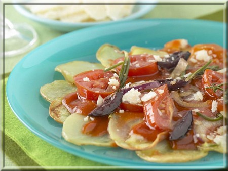 5.Versez le mélange sur les pommes de terre. Recouvrez de fromage et de feuilles de romarin finement hachées.