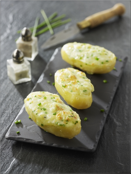 Garnissez les pommes de terre généreusement et passez-les quelques instants sous le grill.