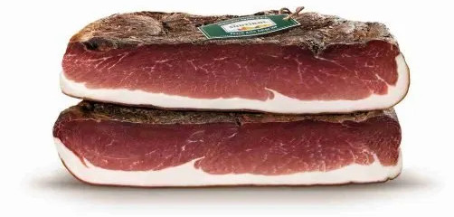 Le Speck Alto Adige IGP est un produit de grande qualité qui exige les meilleurs ingrédients, avec un processus de fabrication minutieux et un savoir-faire artisanal. Celui-ci est confectionné à partir de cuisses de porc dépourvues de gras et bien fermes, provenant d'exploitations reconnues par l'Union Européenne. Des méthodes traditionnelles sont utilisées pour couper les cuisses afin d'obtenir la fameuse 'baffe'.
