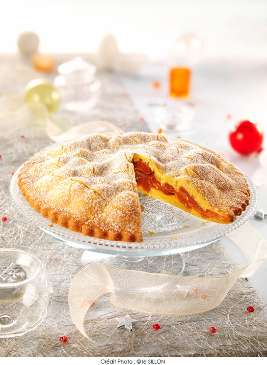 ⑥• Étaler ensuite la moitié de la pâte pour former une galette ronde, disposer les abricots et recouvrir de l’autre moitié de pâte.