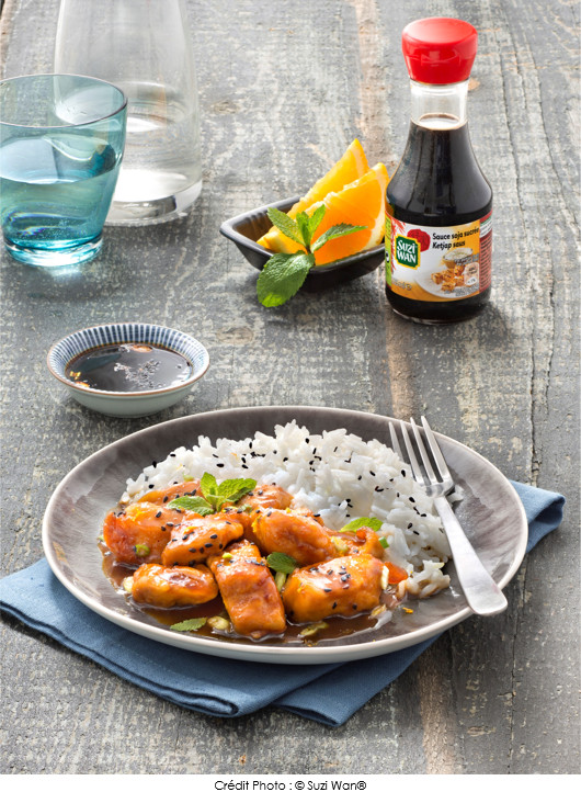 Porc caramélisé à l’orange et à la sauce soja sucrée