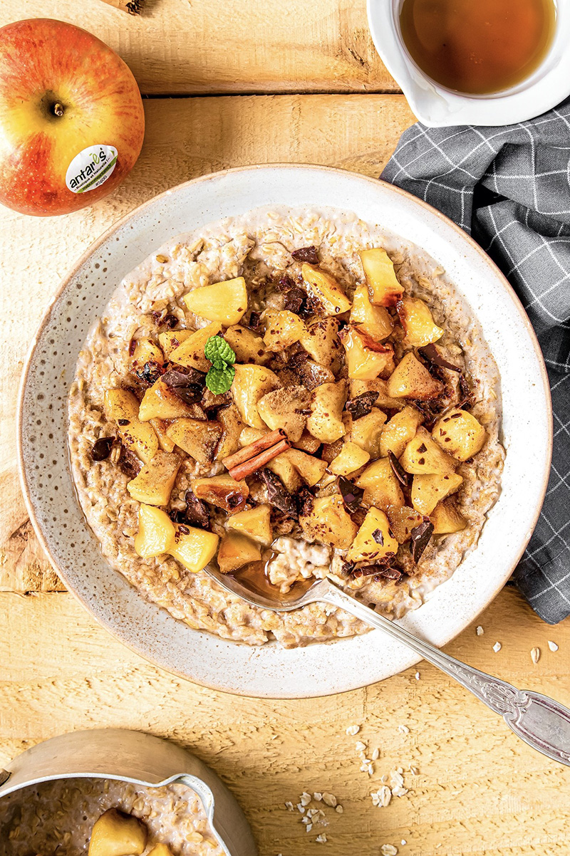 Incontournable des petits déjeuners, le porridge s’est imposé comme LA recette généreuse et facile à faire pour bien commencer la journée. Réalisée avec des pommes Antarès® – première variété française certifiée 100% vergers écoresponsables, produite actuellement au Verger de la Blottière (49) – et un peu de cannelle, c’est une nouvelle recette de saison, gourmande et savoureuse que nous vous proposons de découvrir.