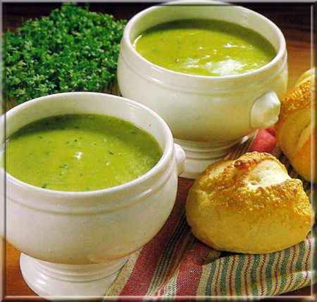 5.Verser dans une soupière. Incorporer la crème et le persil. Mélanger.A accompagner de croûtons et lardons frits