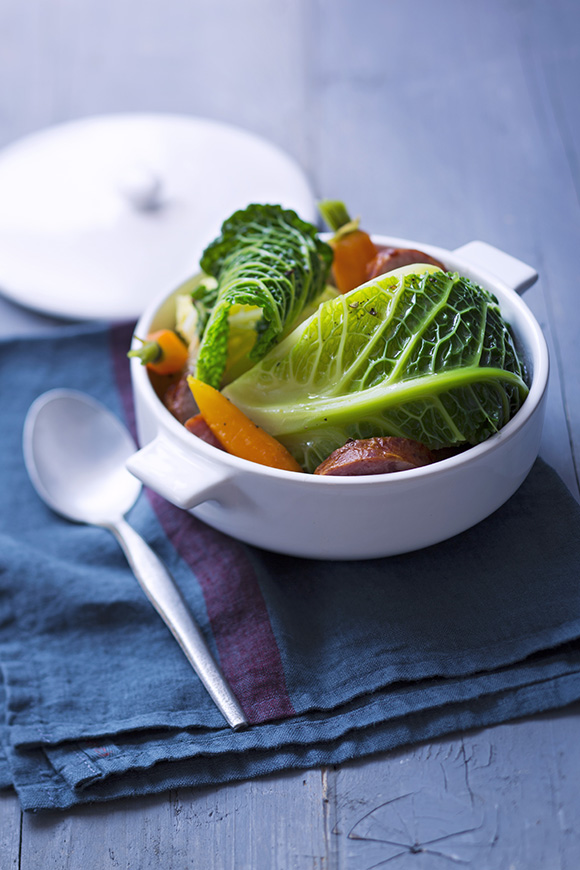 Potée légère au chou, carottes et saucisse de Morteau