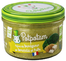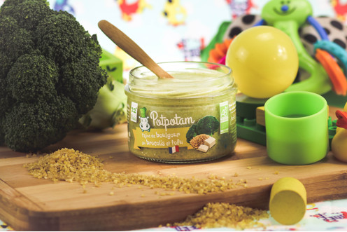 La gamme POTPOTAM comporte des recettes équilibrées et gourmandes adaptées à l’âge et à l’évolution de la dentition des bébés. Son petit pot «Tajine de boulgour au brocolis et tofu» est une alternative vegan parfaitement équilibrée et en adéquation avec les besoins des bébés de 12 mois et plus.