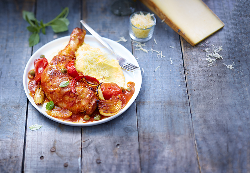 Poulet à la cacciatora avec purée de polenta gratinée au Gruyère AOP Suisse