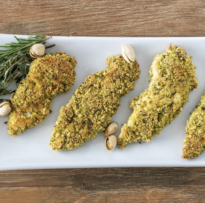 Poulet en croûte de noix de coco et de pistaches