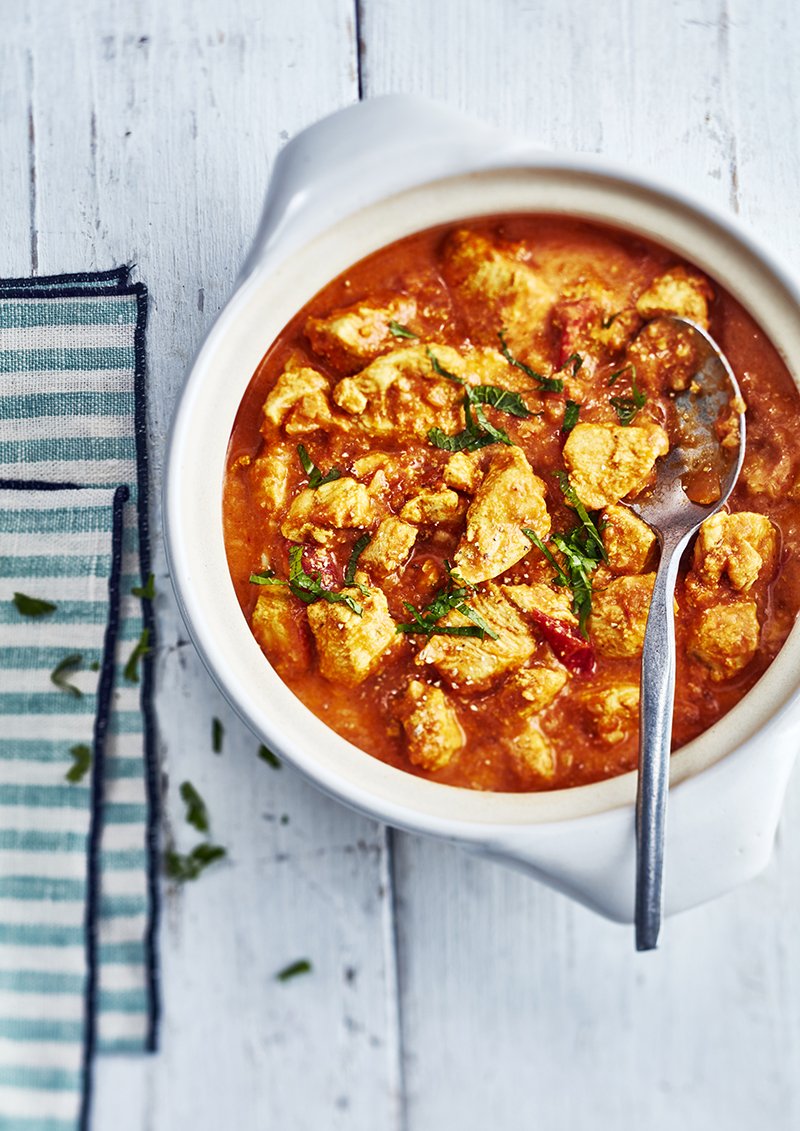 Toutes les subtilités aromatiques d'un repas indien traditionnel sont restituées à travers des morceaux de poulet marinés puis cuisinés dans une sauce au yaourt, à la tomate, et relevés par diverses épices comme le garam masala.