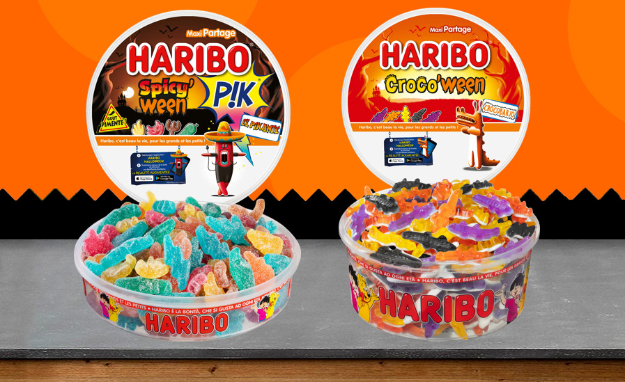 Alors que tous les petits monstres sont de sortie, une application permettra même à cinq terrifiants bonbons Haribo d’apparaître en réalité augmentée sur les emballages !