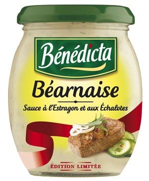 La Béarnaise de Bénédicta : estragon, cerfeuil, piment de Cayenne et échalotes. Elle accompagne les tournedos poêlés, les rôtis chauds ou froids, les volailles mais aussi certains poissons ou crustacés comme le saumon ou les Saint-Jacques.
