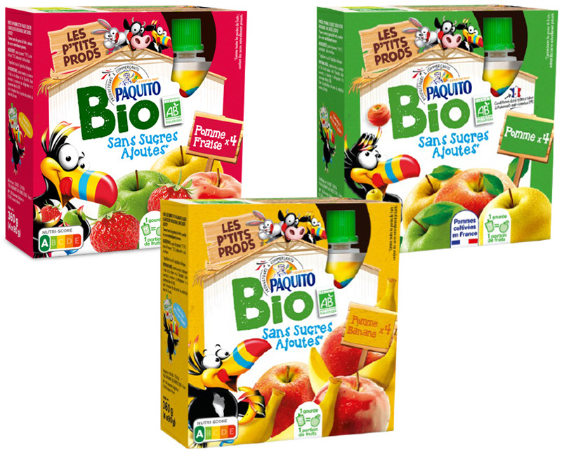 Pour ajouter une touche fruitée au goûter des enfants, la compote bio en gourde est une option de choix ! Également fabriquées en France dans les ateliers de Malemort-sur-Corrèze (Corrèze) et à partir de pommes issues de l’agriculture biologique, les gourdes de compote bio Paquito se déclinent en trois saveurs : pomme bio, pomme banane bio et pomme fraise bio. Et dans une démarche toujours saine ces compotes sont garanties sans sucre ajoutés et arborent un Nutri-score A.