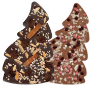 Version « mendiant » au Chocolat Noir : lamelles d’oranges confites, raisins secs, amandes caramélisées et éclats de nougat rappellent l’un des 13 desserts provençaux de Noël. Version croquante au Chocolat au Lait : un mélange original mêlant pulpe de cassis, crêpe dentelle et billes croustillantes !