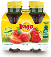 Ce concept ingénieux du "fruit à boire" est maintenant décliné en une gamme de 40 parfums aussi délicieux les uns que les autres. Outre sa grande expérience en production de jus de fruits et le choix précautionneux de ses fournisseurs, le véritable secret du succès de Pago réside dans le l'utilisation d'ingrédients 100% naturels.