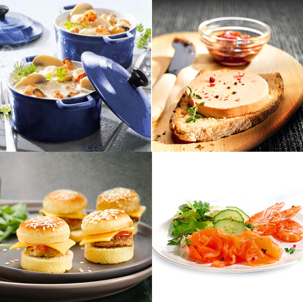 Vous y trouverez notamment des cocktails, pains surprise, petites fours, pagnotes, verrines… pour bien démarrer votre repas avec joie, bonne humeur et convivialité !