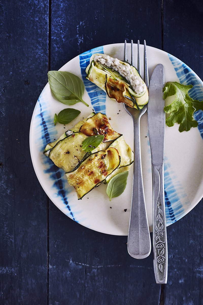 ①• Laver les courgettes et les tailler dans la longueur à la mandoline (environ 3 mm d'épaisseur). Préchauffer le four à 180°C (Th.6)