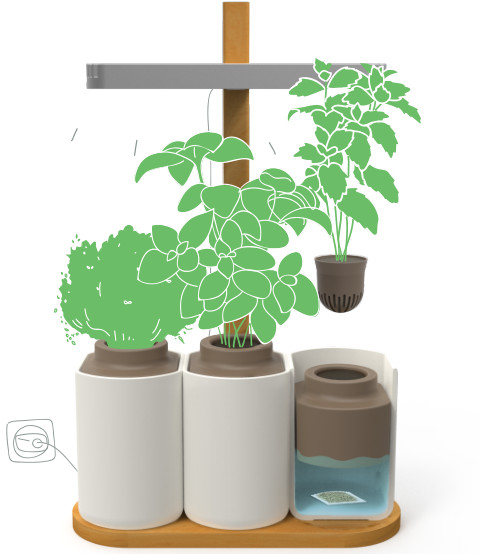 L’éclairage LED reproduit la lumière du soleil et dans chaque pot, la plante flotte sur l’eau et puise les nutriments dont elle a besoin pour une bonne croissance.