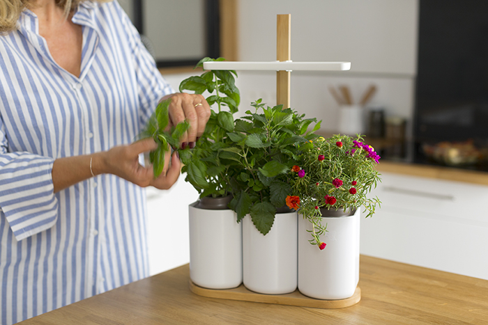 Son système breveté et unique en Europe réunit les conditions idéales pour faire pousser des herbes fraîches et savoureuses toute l’année en toute autonomie.