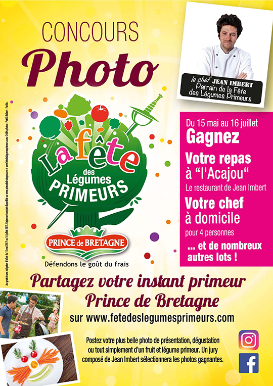 Du 15 mai au 16 juillet, la marque des producteurs de légumes frais bretons, Prince de Bretagne, lance un grand jeu concours photos sur le thème « Partagez votre instant primeur Prince de Bretagne ». Un concours à retrouver sur le site événementiel de la Fête des Légumes Primeurs (fetedeslegumesprimeurs.com), sa page Facebook et son compte Instagram !