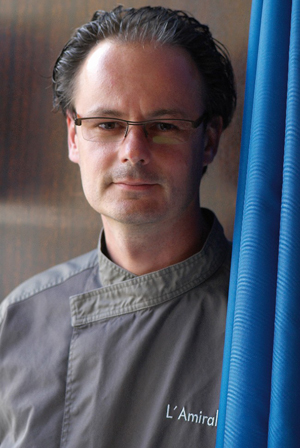En 2001, il retrouve Concarneau et rachète le Grand hôtel-L’Amiral, une institution concarnoise où ont, notamment, été tournées quelques scènes du film « Le chien jaune », inspiré du roman de Georges Simenon. Un vrai challenge car le restaurant de l’hôtel était fermé depuis 25 ans. Après de longues semaines de rénovation, l’établissement se transforme en bar-brasserie-restaurant et garde le nom de L’Amiral. Face à la Ville Close et au port de pêche, il est au cœur de la ville. La cuisine se tourne forcément vers les produits de la mer : coquillages, crustacés et poissons fraîchement débarqués sont les stars de l’assiette. Une place qu’ils doivent partager avec la pomme de terre.