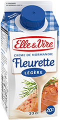 Idéales pour réaliser des sauces délicates avec deux fois moins de matière grasse. Elle & Vire perpétue la tradition de la Crème Fleurette qui consistait à recueillir la fleur du lait cru, désignée par Crème Fleurette. La crème fleurette permet de réussir toutes les préparations car elle est très facile à incorporer.