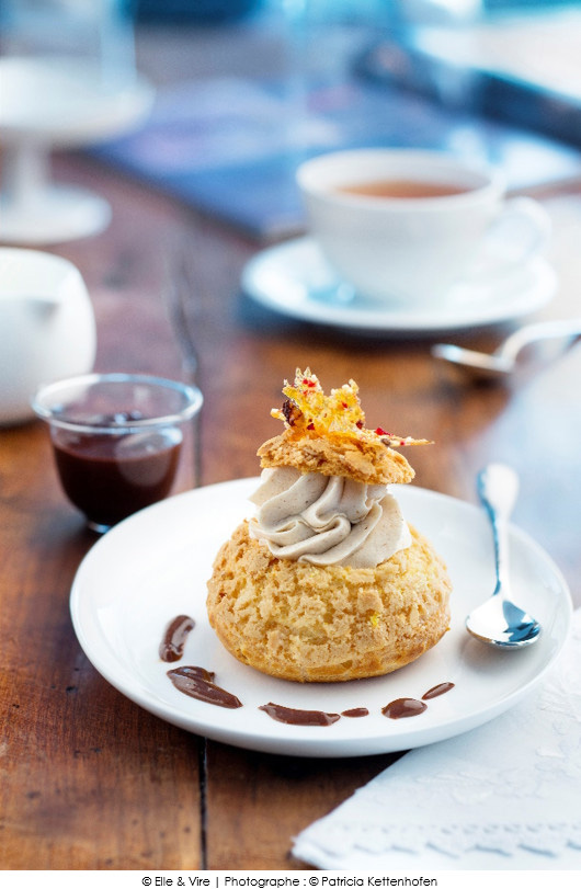 Profiteroles chantilly châtaigne, croquant caramel amandes