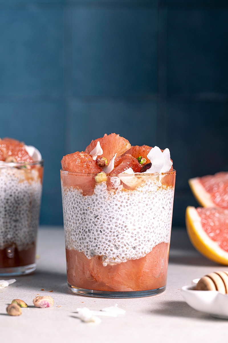 Un dessert frais et léger où la douceur onctueuse du chia rencontre l’acidulé du Pamplemousse de Floride, pour une pause gourmande et équilibrée.