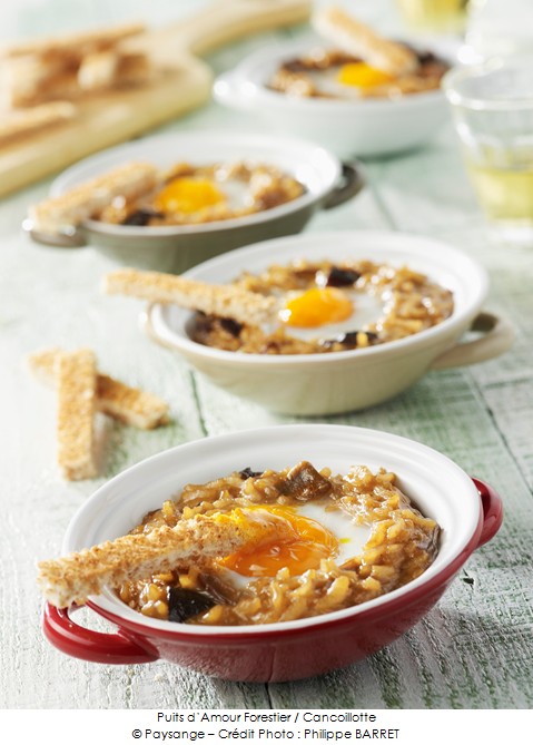 4• Versez le risotto dans des ramequins et faites un puits. Casser un œuf et enfournez 10 minutes à 210° C (th.7).