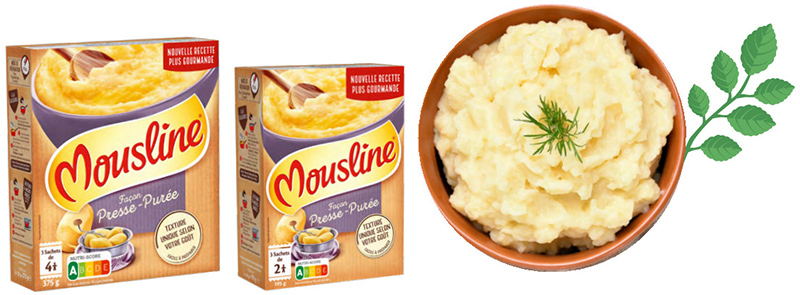Résultat : Mousline® propose un produit composé de 95% de pomme de terre et Nutri-Score A.