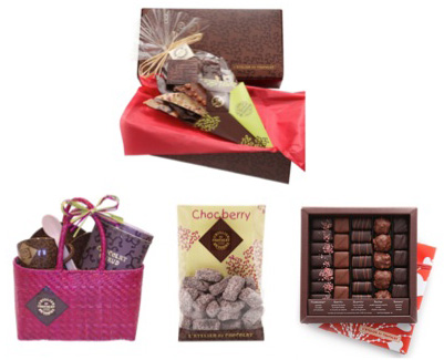 propose des coffrets cadeaux et des boîtes de chocolats,
