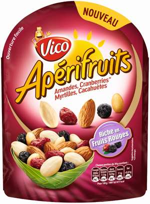 Apérifruits Fruits Rouges, c’est l’association inédite de délicieux fruits rouges et de noix savoureuses pour se faire du bien… en mangeant du bon. Un nouvel atout bien‐être qui accompagnera tous vos apéritifs, pique‐niques et autres petites pauses gourmandes.
