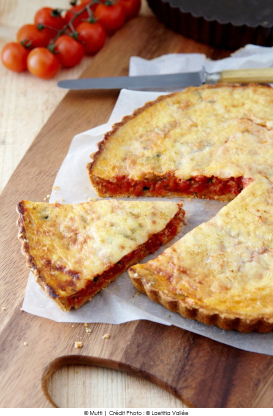 Dans cette recette de quiche à base de thon, on retrouve les tomates pelées Mutti.