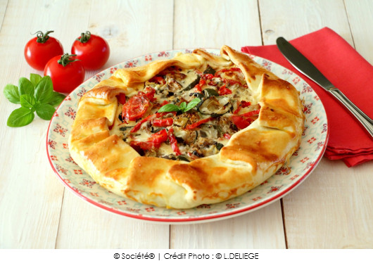 ⑥• Dans un bol, fouettez l’œuf, la crème et le Société® à Tartiner. Versez sur les légumes et enfournez pendant 20 à 30 minutes jusqu’à ce la pâte soit dorée.