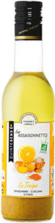 La signature brûlante du gingembre, le caractère poivré du curcuma et l’acidité du citron : une Assaisonnette santé idéale pour une salade de crudités, une salade de pâtes ou de riz, une volaille sautée ou une salade de poulet, un tartare ou un carpaccio de poisson, des crevettes vapeur, un guacamole…