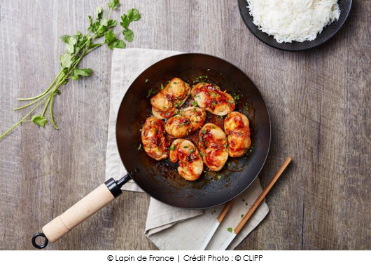 Parfaitement en phase avec les attentes des consommateurs en quête de produits sains et simples à cuisiner, pour sortir du quotidien, les professionnels de la filière proposent donc du lapin en morceaux, voire désossé. On les trouve dans tous les rayons des magasins de grande surface ou chez le boucher-volailler. A cuisiner à la poêle, en cocotte, au wok, en pierrade, en papillote et même avec les nouveaux robots de cuisine, le lapin revisite singulièrement la tradition, pour un plaisir simplissime et express.