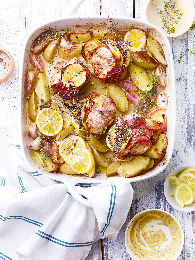 Râbles de lapin rôtis à la moutarde, thym et citron