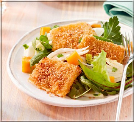 Les déposer dans les assiettes dressées sur les dômes de salade, et déguster.