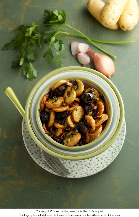 Précuisez les Rattes à l’eau ou à la vapeur. Faites chauffer dans une poêle un petit mélange beurre-huile. Coupez les Ratte du Touquet en deux ou en quatre et laissez revenir à feu doux environ 15 minutes selon le calibre.