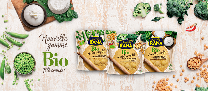 La maison Rana dévoile une toute nouvelle gamme de pâtes fraîches farcies, élaborée avec de la farine de blé complet et des ingrédients authentiques et savoureux, tous issus de l’agriculture biologique.