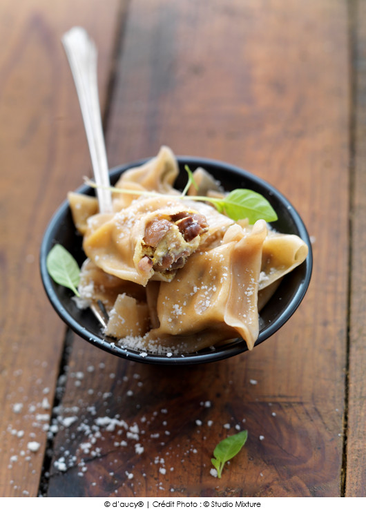 d’aucy a sélectionné ses délicieux raviolis de châtaignes et fromage frais.