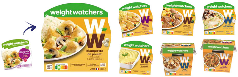 La gamme de recettes WW s'harmonise et les packagings reflètent désormais la nouvelle identité de marque. Un nouvel habillage très coloré qui met notamment en avant la nouvelle marque WW et ses engagements produits pour le mieux manger au quotidien. Il est facile d'adopter des habitudes saines avec WW grâce à des recettes gourmandes 30% moins grasses et moins sucrées, des recettes sans conservateur, colorant, arôme ou édulcorant artificiels, et avec la présence du logo Nutri-score pour choisir plus facilement les produits de meilleure qualité nutritionnelle.