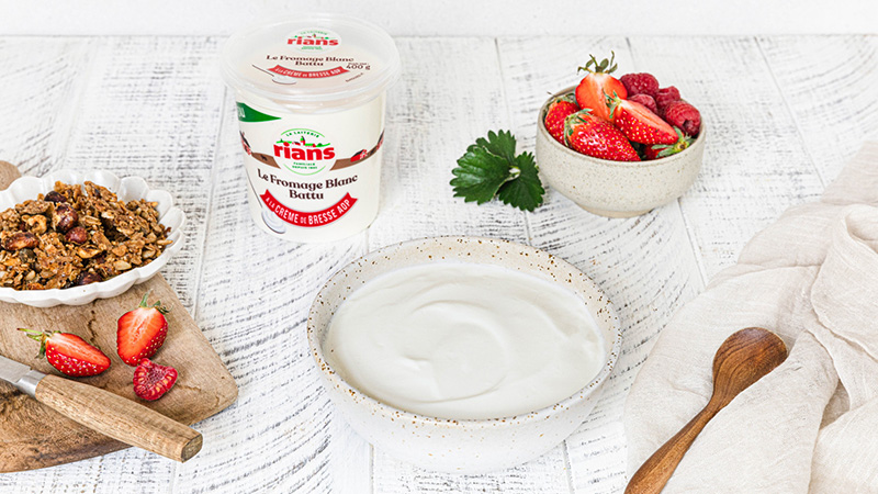 Toujours fidèle aux traditions et à la valorisation des terroirs, la Laiterie Rians lance une nouvelle gamme : les Fromages Blancs Battus Nature et Vanille. Tout le savoir-faire crémier de Rians avec des fromages blancs battus, dans lesquels a été incorporée de la Crème de Bresse AOP, pour un moment de gourmandise assuré. La crème de Bresse libère des arômes frais et intenses et apporte une texture onctueuse.