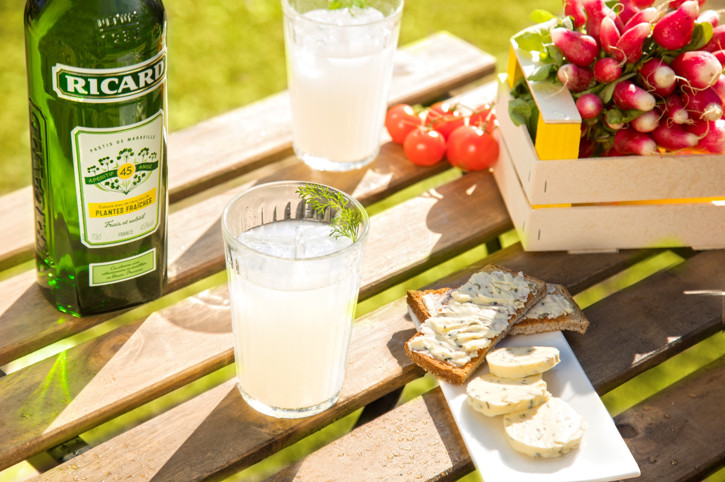 Les amateurs d’Anisés et les palais curieux de recettes authentiques découvriront ainsi un nouveau plaisir anisé, au plus près du goût de la nature. Ce RICARD se déguste dans de grands verres, généreusement allongé d’eau bien fraîche (7 à 10 fois le volume de pastis) et avec beaucoup de glaçons. À l’apéritif, il s’accompagne de bouchées simples et gourmandes, tout juste rapportées du marché : fromage de chèvre frais de saison, saumon à l’aneth, jardinière de mini légumes…